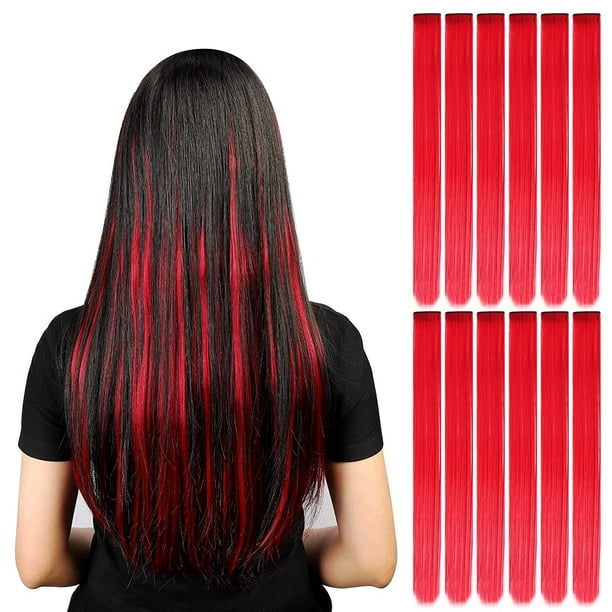 Gifts For Women 12 Pcs Colored Party Highlights Colorful Clip In Hair Extensions 22 Inch Red Walmart Com