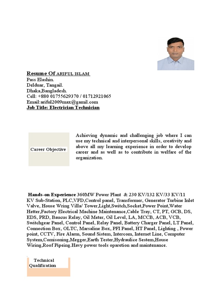 Resume Of Job Title Electrician Technician Pdf Electrician Electrical Engineering